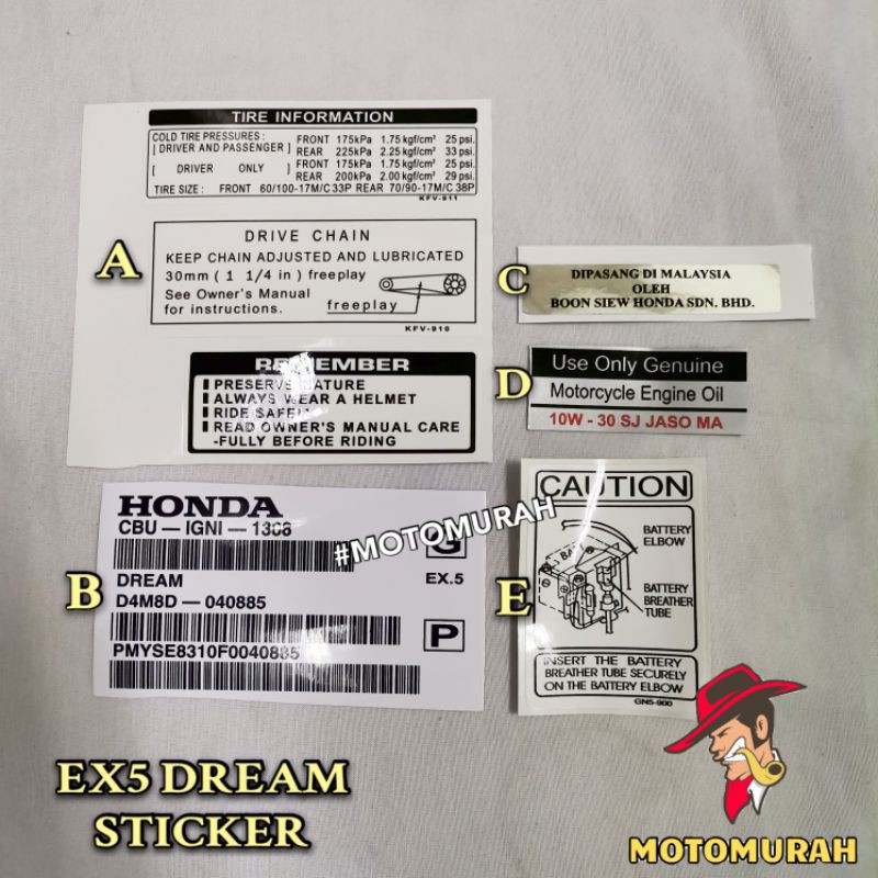 Stickers (c100b / c100mb) for honda ex5 dream 100, kick start 2012 · stickers (c100b/c100mb) for honda ex5 dream 100, kick start 2012 . Pho decal | honda dream | old motorcycle restoration. Stiker.sticker swingarm honda thai manufacturing co ltd 7.5cm di tokopedia ∙ promo pengguna baru ∙ cicilan 0% ∙ kurir instan. I ordered the custom seat cover, black plastics, a couple of small stickers, and the kawasaki sticker on the swing arm.